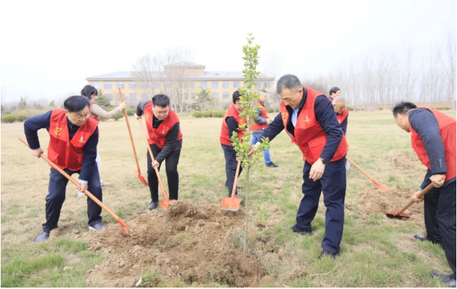 植樹現(xiàn)場,大家分工明確,配合默契,有的揮锨挖坑,有的扶苗培土,有的提桶澆水,每道環(huán)節(jié)銜接有序、配合默契,每道工序仔細認真、一絲不茍,呈現(xiàn)出一派忙碌有序、熱火朝天的勞動景象,洋溢著團結(jié)協(xié)作、奮發(fā)向上的良好氛圍。經(jīng)過緊張的勞作,一排排新種植的樹苗迎風(fēng)而立,盡顯春日勃勃生機、萬物競發(fā)的姿態(tài)。