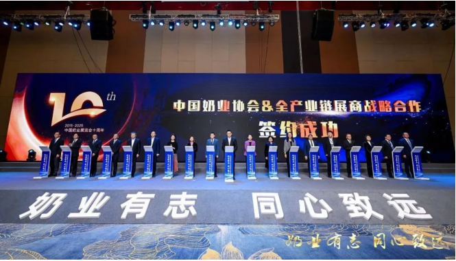 為了進(jìn)一步凝聚行業(yè)力量,強(qiáng)化行業(yè)準(zhǔn)則,明確企業(yè)擔(dān)當(dāng),促進(jìn)廣泛交流與合作,共同塑造中國(guó)奶業(yè)健康、安全、可持續(xù)的行業(yè)形象,滿足人民日益增長(zhǎng)的美好生活需求,展商代表與中國(guó)奶業(yè)協(xié)會(huì)代表共同登臺(tái),正式發(fā)布《中國(guó)奶業(yè)展覽會(huì)展商宣言》。這一莊嚴(yán)時(shí)刻不僅彰顯了奶業(yè)界的強(qiáng)大凝聚力,更激勵(lì)著全行業(yè)同仁攜手并進(jìn),為實(shí)現(xiàn)奶業(yè)強(qiáng)國(guó)的宏偉目標(biāo)奮勇前行。大家紛紛表示,將以更加飽滿的熱情和務(wù)實(shí)的行動(dòng),切實(shí)履行宣言中的每一項(xiàng)承諾,共同書寫中國(guó)奶業(yè)更加輝煌燦爛的明天。
